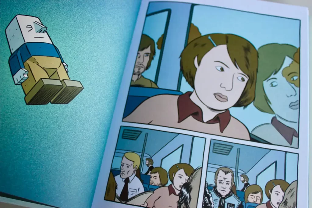 Una vita assolutamente normale, fatta di lavoro, cartone animato preferito in loop durante il tempo libero, pranzi con la mamma, un amico al telefono. Questa è la protagonista del romanzo, disegnato e colorato con toni energici, vivaci e brillanti a contrastare il mondo grigio e triste descritto.