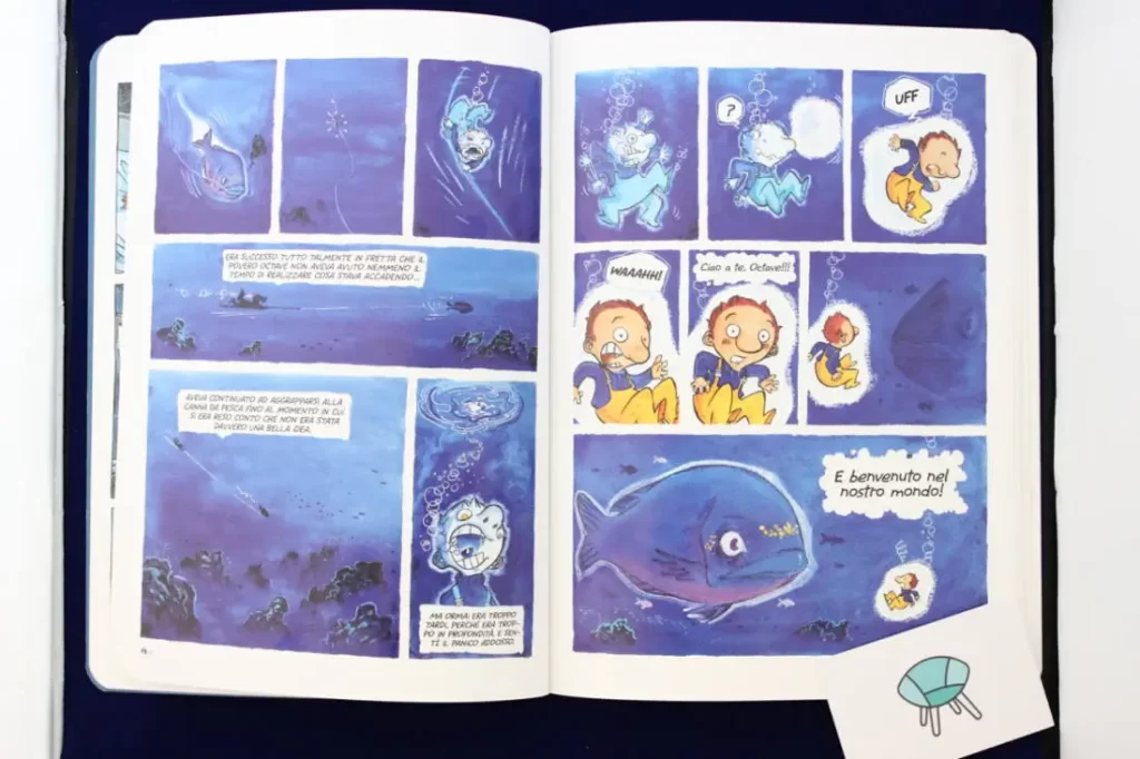 Attraverso il rapporto problematico con il mare che gli ha portato via il padre pescatore, Octave vive quattro avventure fantastiche, una per stagione dell’anno, che lo vedono coinvolto nel salvataggio di animali acquatici in pericolo, meravigliosamente pronti a lasciarsi amare anche dal lettore.